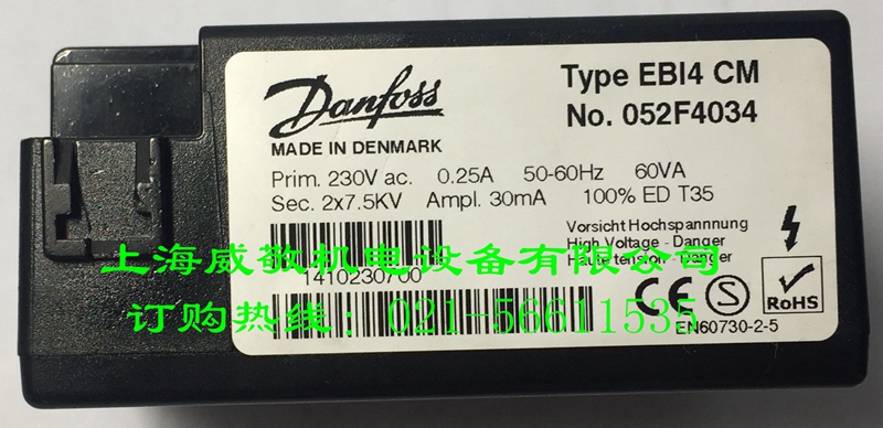 首頁 / 產品展示 / 點火變壓器/高壓包 / 丹佛斯(Danfoss)高壓包 / DANFOSS 雙極點火變壓器EBI14 CM 052F4034 | 2*7.5KV 燃燒器專用高壓包